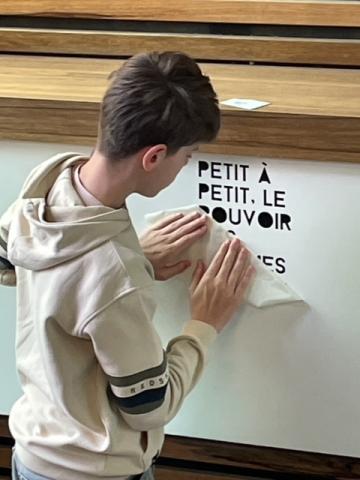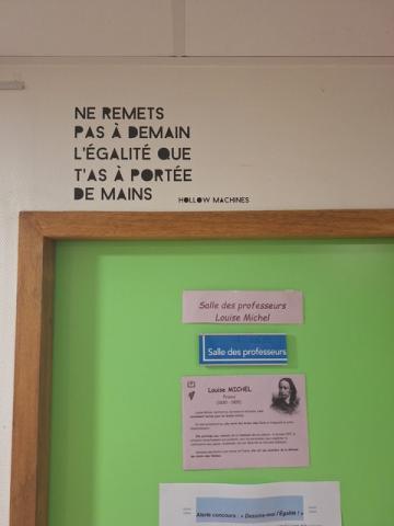 Les interventions graphiques ont fait l’objet d’un travail d’écriture alliant humour, poésie et engagement. En faisant écho à des questions d’actualité et de société, ce projet interdisciplinaire s'inscrivant dans l'EPI « Liberté, Égalité, Humanité » a été l'occasion de questionner les inégalités, les discriminations et la place des femmes dans l’espace public.